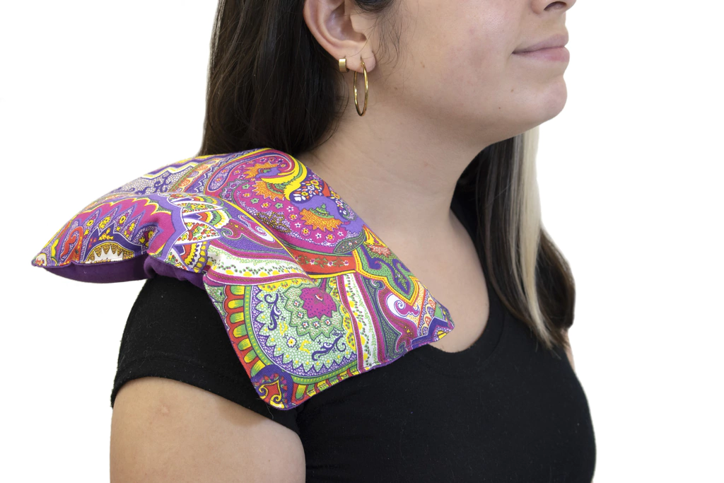 Alivio natural para dolores musculares, cólicos y tensiones, esta almohadilla multiuso está rellena con semillas de lino y lavanda seca orgánica certificada, que aporta un aroma relajante y beneficios terapéuticos.